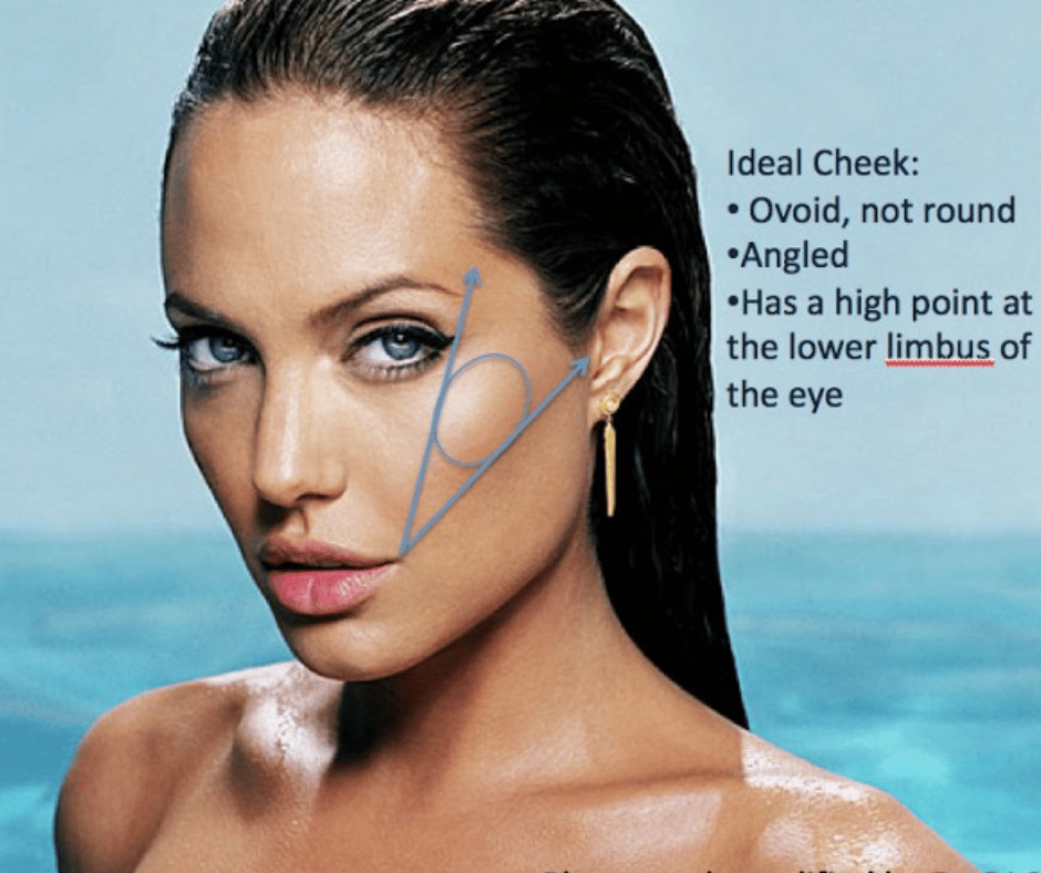 A key goal in treating patients with cheek volume loss is to restore a wide Ogee curve to the mid-face. This helps to relieve skin droop particularly in the smile lines and restore a more youthful anatomy.Mathematical formulas using the Golden Ratio, or Phi, can be used to find this point on the cheek. Cheek fillers can be used to improve the shape of the cheek to more ideal proportions.